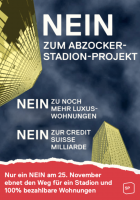 Wenn die Stadt Zürich das Stadion selber baut, ist das für sie um ein Vielfaches günstiger. Wollen wir den Immobilien-Fonds der Credit Suisse wirklich über eine Milliarde Franken bezahlen? Das sind 4350 Franken pro Stimmbürgerin und Stimmbürger!